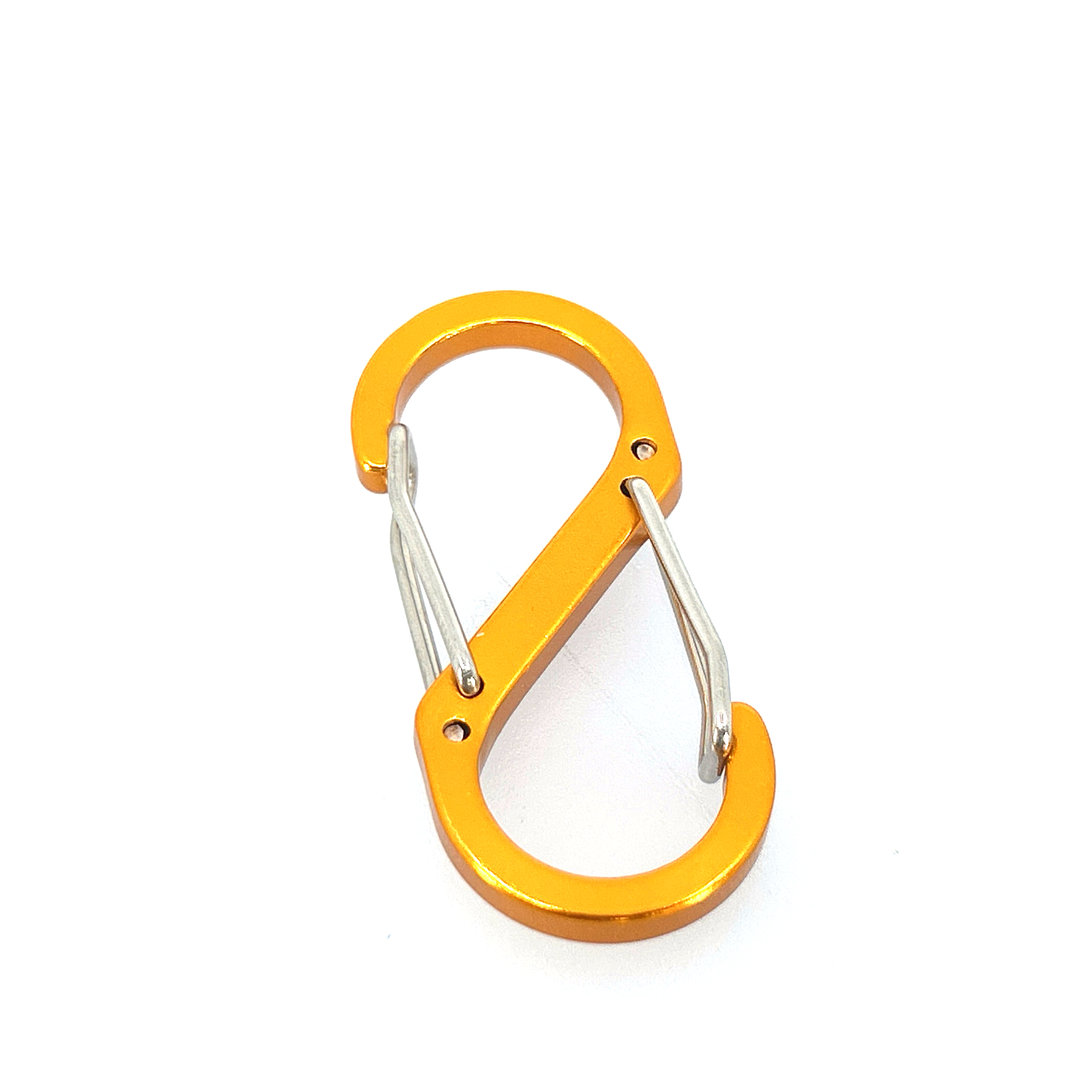 - Biztonsági záróelemek: A karabiner mindkét vége rugós zárral van felszerelve, amely biztosítja a tárgyak biztonságos rögzítését és megakadályozza azok véletlenszerű kilazulását.