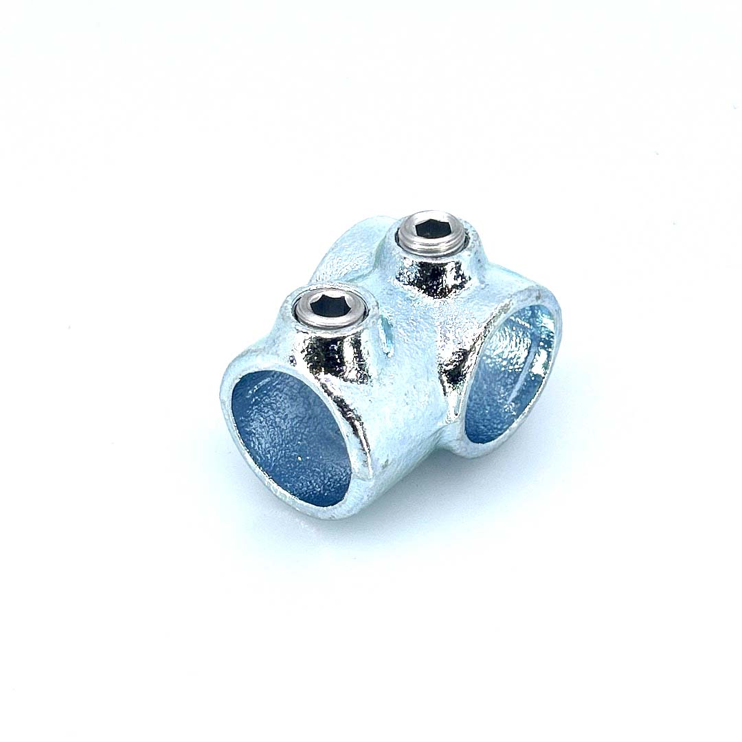 Az összekötő elem 2 ágat tartalmaz, ami azt jelenti, hogy kettő oldalról lehet rá csöveket csatlakoztatni. Nem ajánlott támasztékként használni. Erre a célra talapzatot használnak.