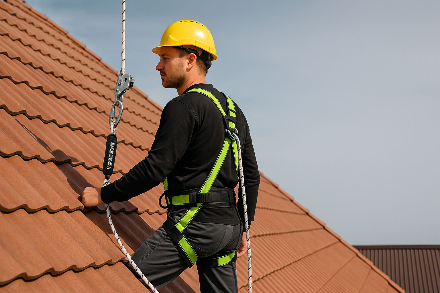 - ferde tetőkön végzett munkákhoz – biztosítás a tetőfelületen való mozgás és munkavégzés közben,