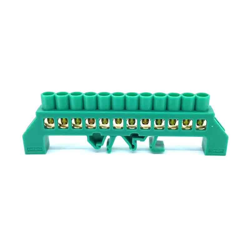 Szigetelt földelősín (PE), zöld, védővezetőkhöz. 35x7,5 -es szerelőlapra szerelhető.