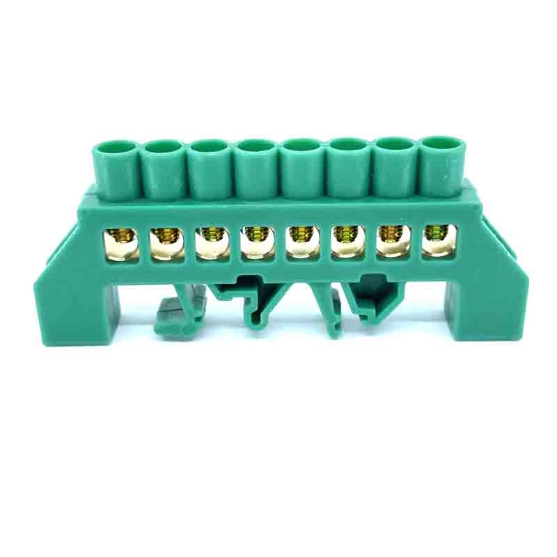 Szigetelt földelősín (PE), zöld, védővezetőkhöz. 35x7,5 -es szerelőlapra szerelhető.