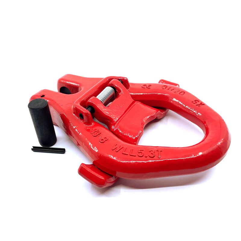 A konténer kampó 80-as, nagy szilárdsági osztályú ötvözött acélból készült, piros komaxit felületkezeléssel. Konténerek konténerrakodóra történő emelésére szolgál. A védőfedél arra szolgál, hogy a kampó ne csússzon ki a konténeren lévő fogantyúból.
