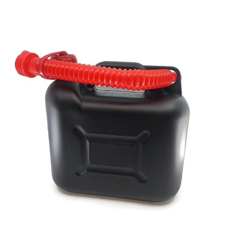 Műanyag kanna csavaros kupakkal és műanyag ürítőcsővel a folyadék könnyebb kiöntéséhez. A kannákat üzemanyag szállítására és tárolására használják.