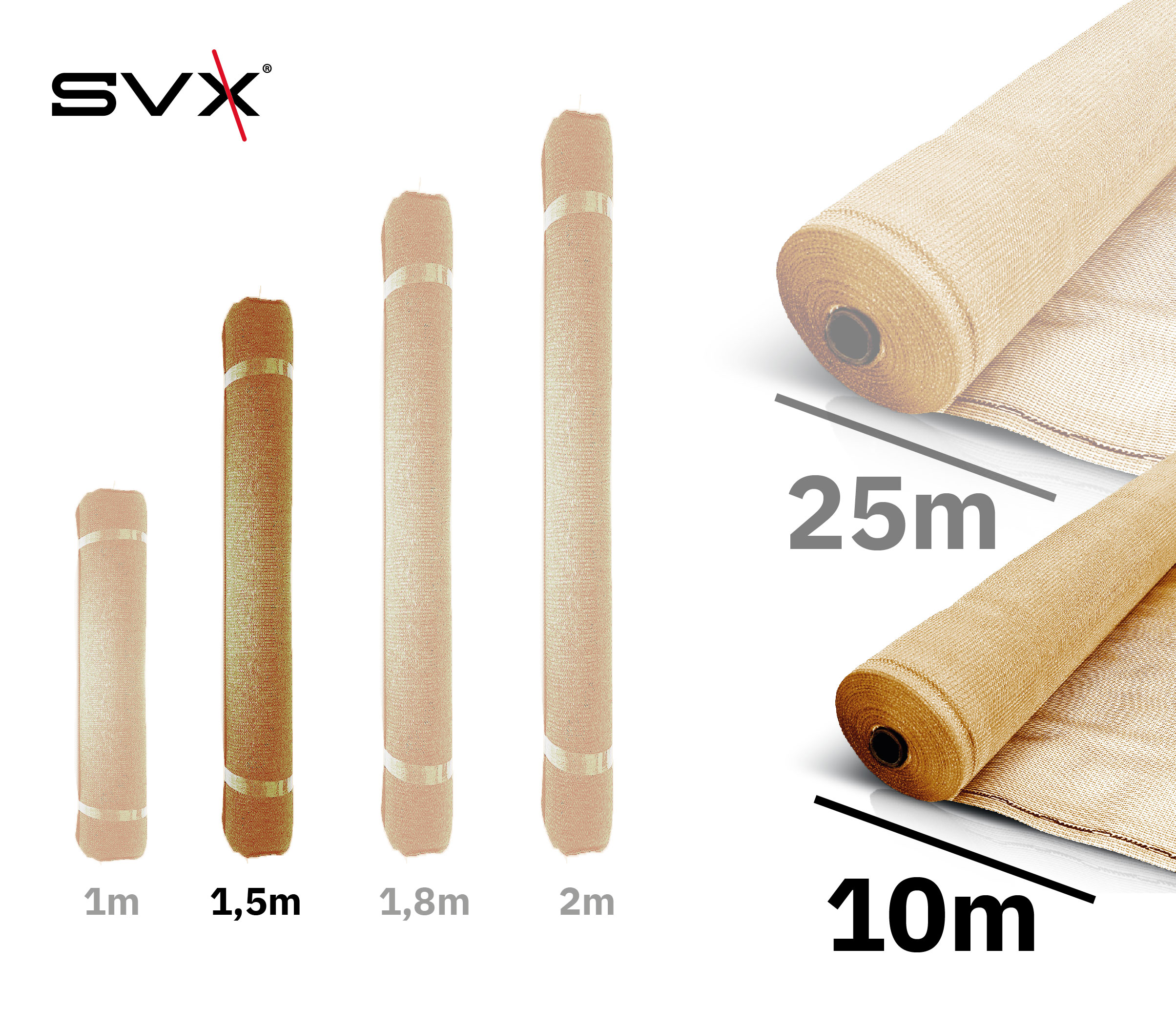 SVX Árnyékoló háló, homoksárga 95% - hosszúság 10m - magasság 1,5m