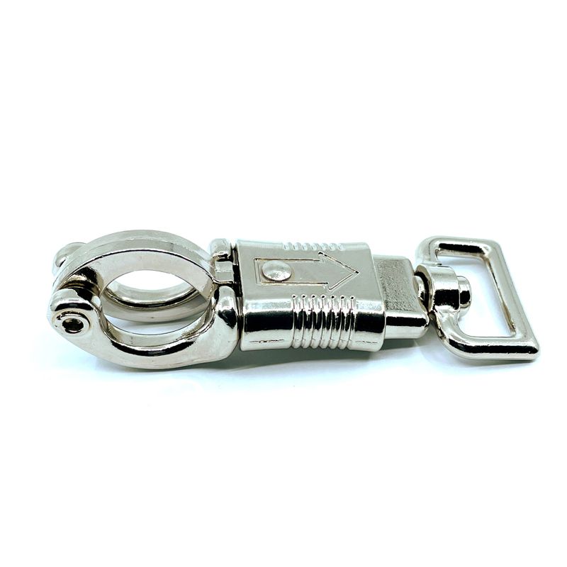 A PANIK biztonsági karabiner a forgóhorgoknak köszönhetően el tud fordulni. Főleg tenyésztésben használják, lovak, szarvasmarhák, juhok és kutyák számára alkalmas. Amikor egy kutyát vezet, ami hirtelen megijed, a karabiner kinyílik és megakadályozza az Ön keze sérülését.