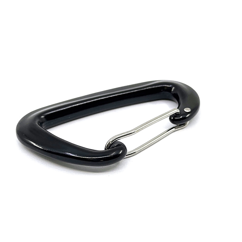 A karabiner fekete színű, eloxált alumíniumból készült.