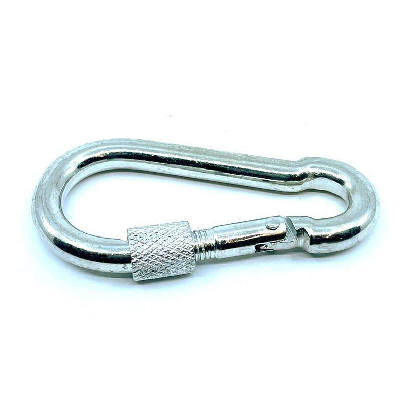 A DIN 5299D horganyzott, biztonsági zárral ellátott karabiner egy acél karabiner, amely fehér galvanikus cink felületkezeléssel rendelkezik a jobb kopásállóság és a mechanikai sérülésekkel szembeni ellenállóság érdekében. Ennek köszönhetően a karabiner még igényes körülmények között is használható.