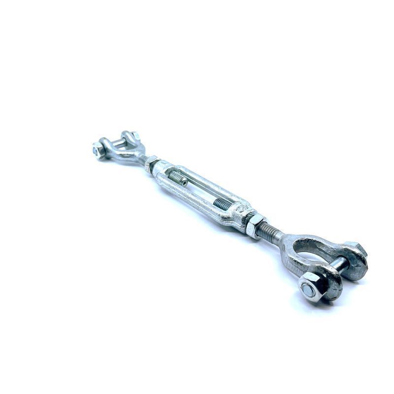 - A DIN 1480 feszítő acélházból (terméktestből) és két menetes rúdból áll, fejekkel, villa alakban.