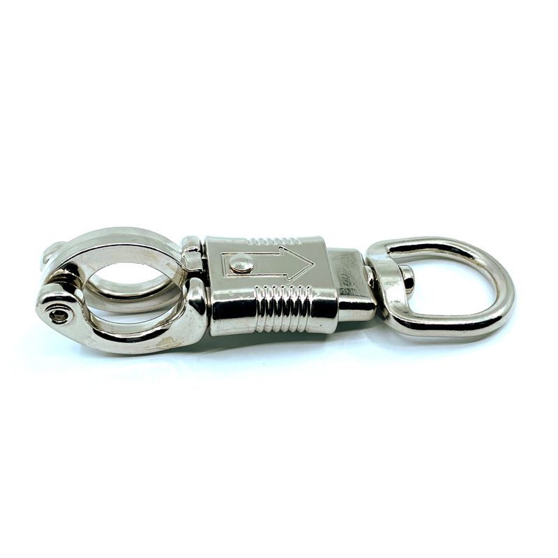 PANIK biztonsági karabiner forgó gyűrűvel és szemmel, rögzítőkötelekhez. Alkalmas lovakhoz, szarvasmarhákhoz, kutyákhoz. Amikor egy kutyát vezet, ami hirtelen megijed, a karabiner kinyílik és megakadályozza az Ön keze sérülését.