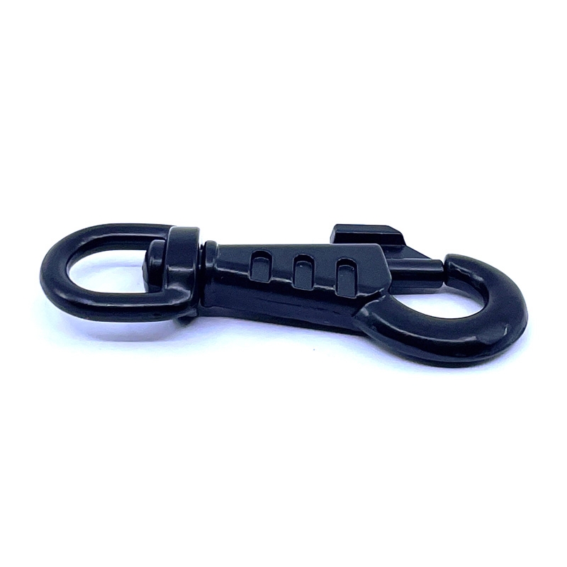 Forgó karabiner felülnyomással, cinkötvözetből készült. Bordás karabiner minőségi kidolgozással.