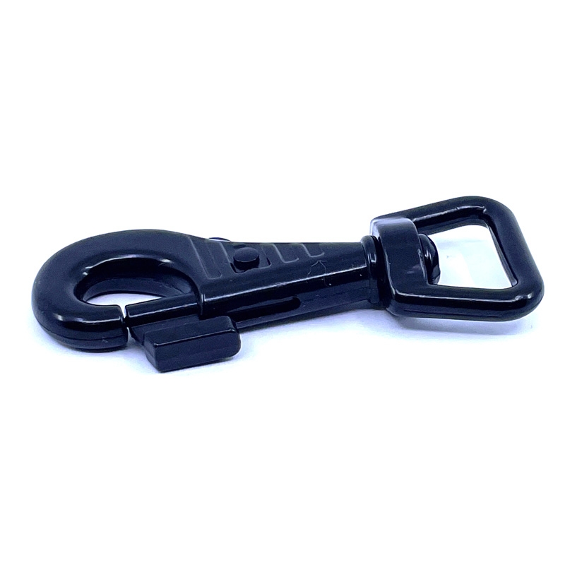 Forgó karabiner felülnyomással és biztosítékkal, fekete 82x20mm