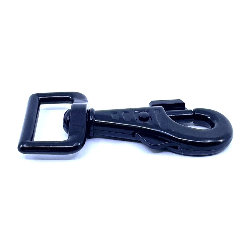 Forgó karabiner felülnyomással és biztosítékkal, fekete 84x25mm
