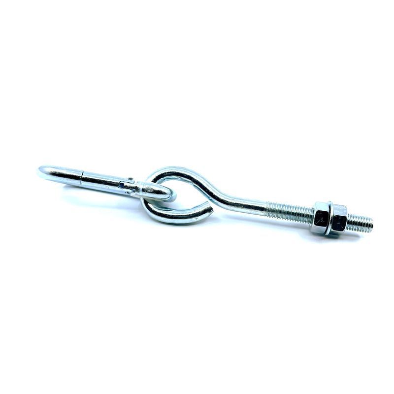 A horganyzott, metrikus menettel és karabinerrel ellátott kampó egy speciális kampó a hinta biztonságos felfüggesztéséhez (függőágy, mászóháló, mászókötél). Ez a karabinerrel ellátott kampó galvanikusan horganyzott acélból készült. A karabiner teflongyűrűvel rendelkezik a simább mozgás érdekében és megakadályozza a nem kívánt "nyikorgó" hangok kibocsátását használat közben.