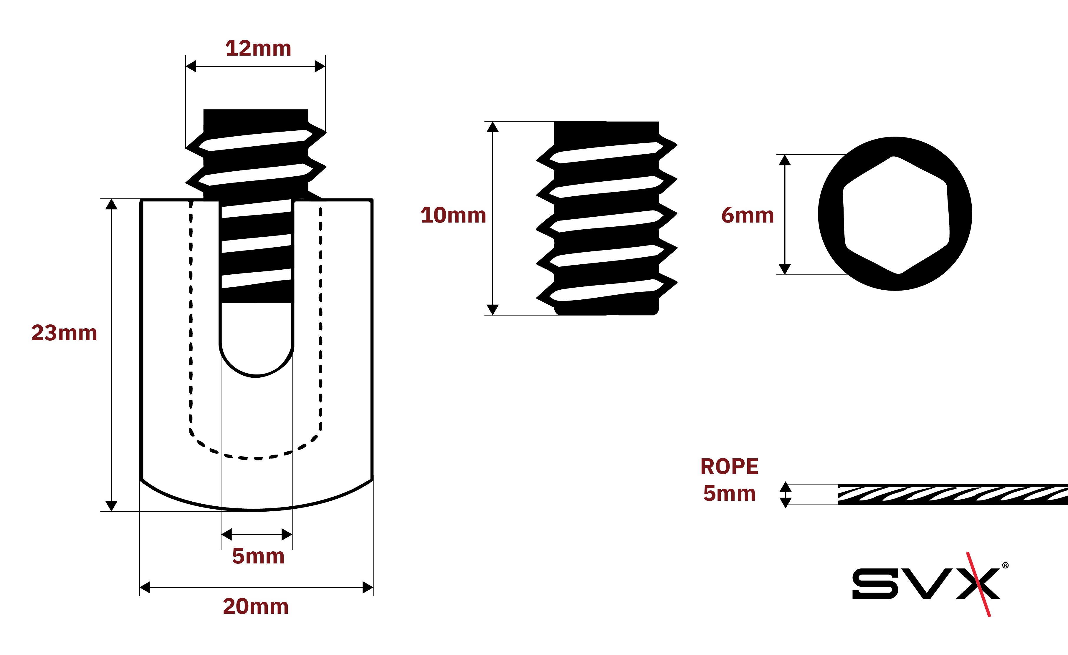 Menetes csavar a biztos szorításhoz a kötél sérülése nélkül