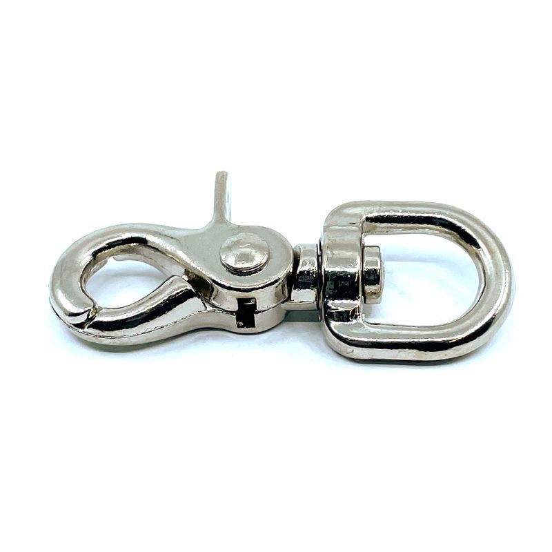 Nikkelezett nyíló karabiner, alkalmas szerszámok rögzítésére a munkaszíjhoz. Sokoldalúan használható a sportban és szabadidős tevékenységekben.