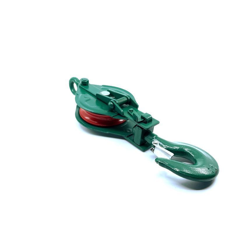 A görgő tetején kampó található, reteszeléssel a könnyebb rögzítés érdekében. Használható anyagmozgatáshoz összeszereléskor és nehéz rakományok emeléséhez a raktárban, műhelyben, garázsban, gyártócsarnokban.