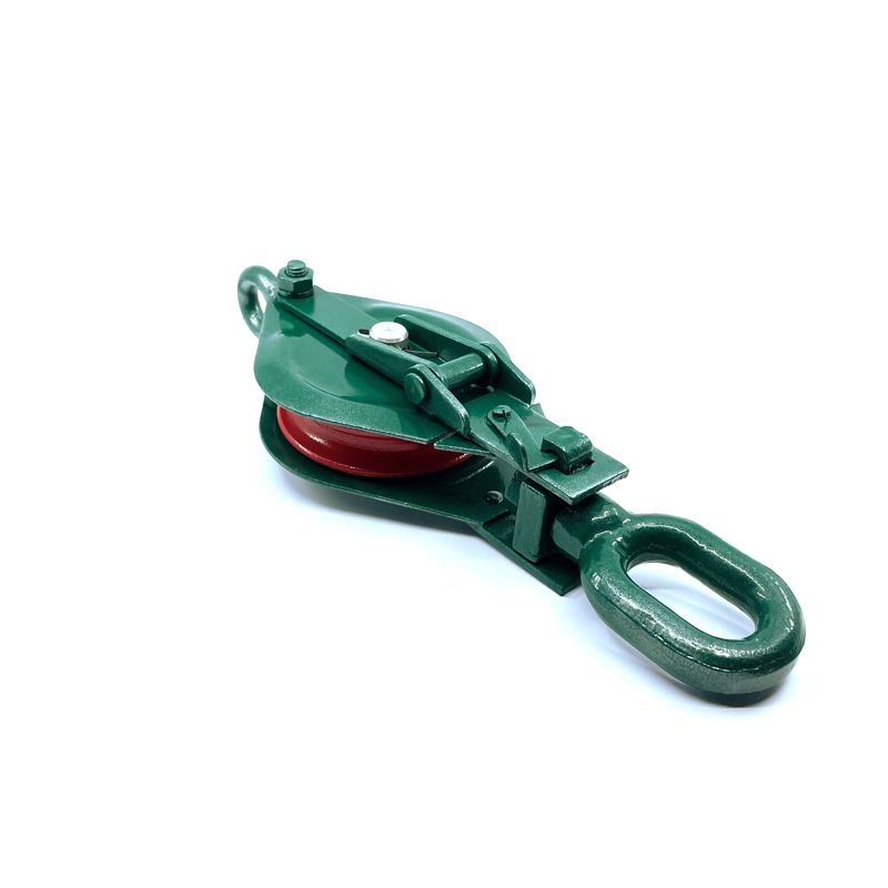 A görgő tetején szem található a biztonságosabb rögzítés érdekében. Használható anyagmozgatáshoz összeszereléskor és nehéz terhek emeléséhez a raktárban, műhelyben, garázsban, gyártócsarnokban.