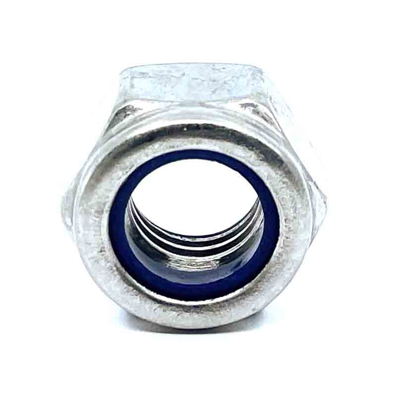 - A biztosítóanya beépített nylongyűrűvel rendelkezik, amely belevágódik a csavar menetébe és így rögzíti a csavart és megakadályozza a spontán kicsavarodást a megnövekedett vagy állandó terhelés hatására.