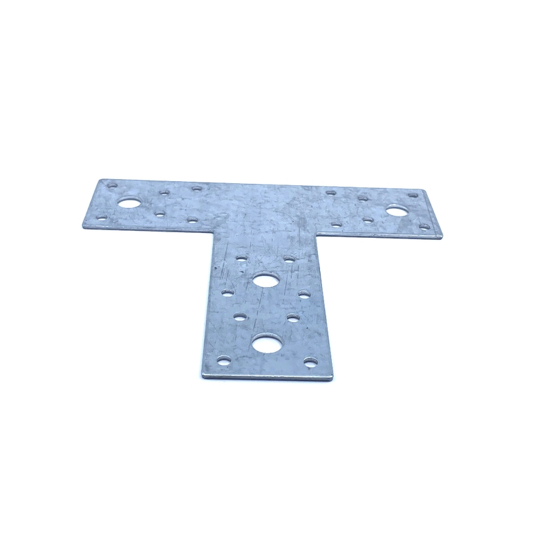 A T-típusú csatlakozó lemez a vízszintes gerendák oszlopok tetején történő rögzítésére szolgál. A három elem egyidejű összekapcsolásának lehetősége azt jelenti, hogy ezeket főként olyan oszlopokon használják, amelyeken két vízszintes gerenda van összekötve. Ezeket a csatlakozó lemezeket ácsszögekkel, facsavarokkal, betonhorgonyokkal vagy M10-es csavarokkal lehet rögzíteni.