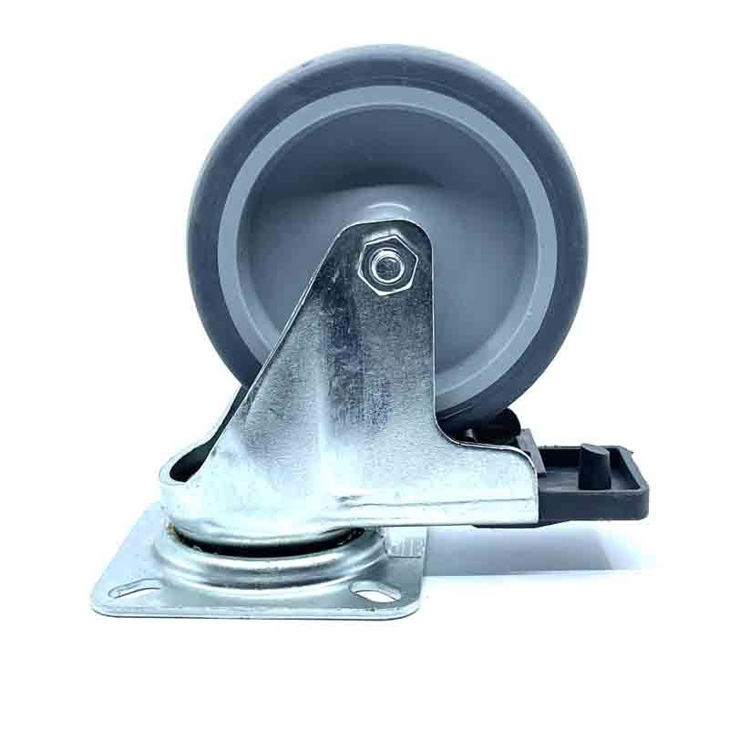 - A hátsó fék a görgő MÖGÖTT található, a mozgás irányának megfelelően. A hátsó fék alkalmas targoncák lapos alvázára.