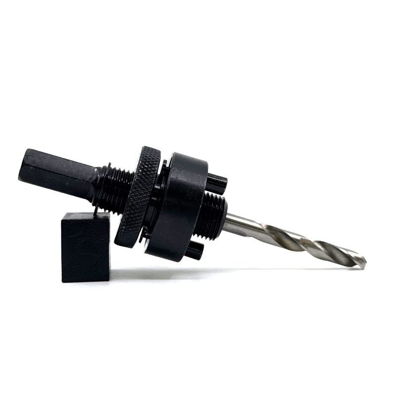 A szerelvényt egy 35 mm-es munkahosszú középfúróval együtt szállítjuk. Ideális süllyesztőfúrókhoz, bimetál koronákhoz. A bilincs szilárdan rögzítve van a süllyesztőfúróhoz, amely csökkenti a rezgéseket.