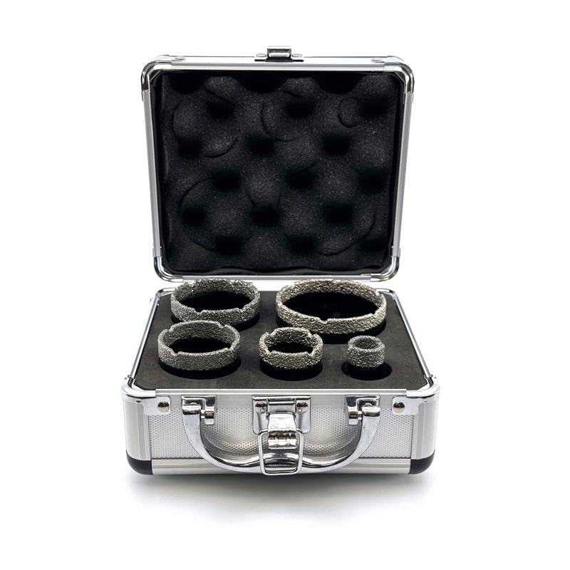 Gyémánt fúrószárak maró készlete praktikus kofferben. Ezek a fúrószárak garantálják a legkeményebb anyagok fúrásának gyorsaságát.