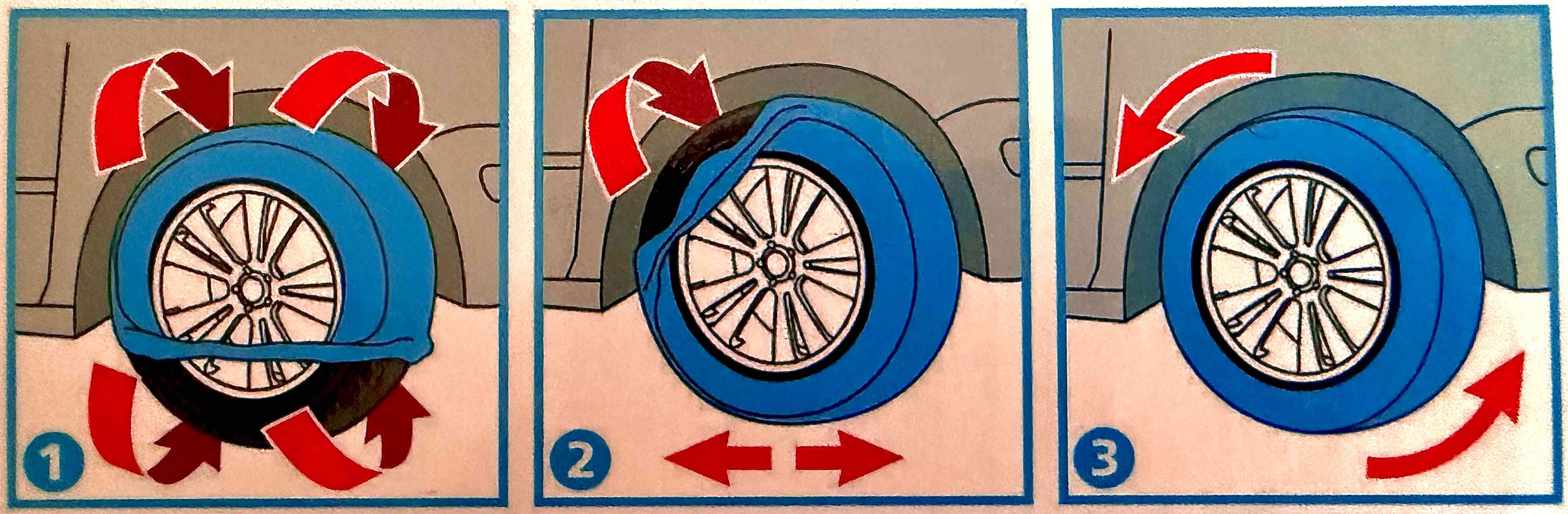 - Lassan mozdítsa meg a járművet kb. ½ kerékfordulatot, majd a szabaddá vált részt húzza rá teljes kerületben.