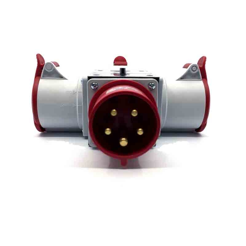 Az IRRN 3253 bemenettel, 3x IERN 3253 kimenettel, IP44 védelemmel ellátott hármas elosztó egy 5 pólusú adapter 400 V névleges feszültséggel a háromszoros 32 A kimeneti elosztáshoz, IP44 védelemmel, valamint nagy szilárdsággal és tartóssággal.