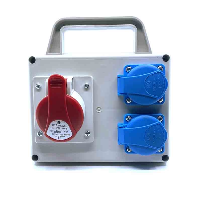 ROS 1630 Praktik-IP54 külső minialjzatos kombináció tartóval. A kapcsolótábla rögzített tápegység részeként készült normál beltéri és kültéri környezetben, -25 °C és + 40 °C közötti hőmérséklet-tartományban. Használható ipari elosztórendszerekben, építkezéseken stb.