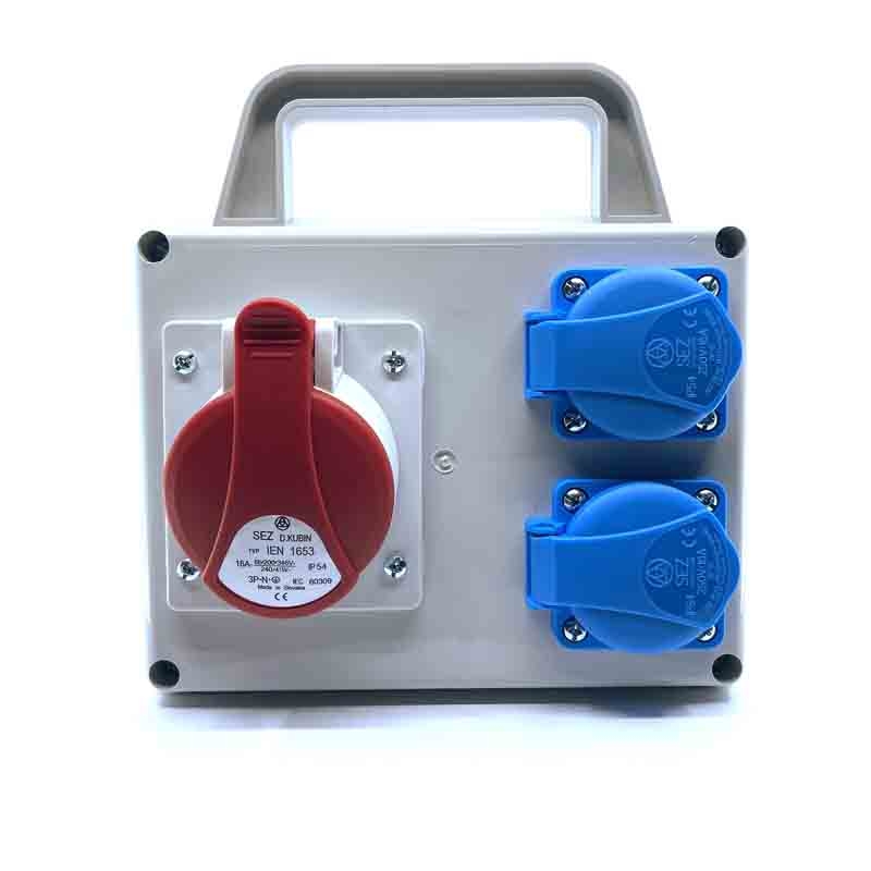 ROS 1631 Praktik-IP54 külső minialjzatos kombináció tartóval. A kapcsolótábla rögzített tápegység részeként készült normál beltéri és kültéri környezetben, -25 °C és + 40 °C közötti hőmérséklet-tartományban. Használható ipari elosztórendszerekben, építkezéseken stb.
