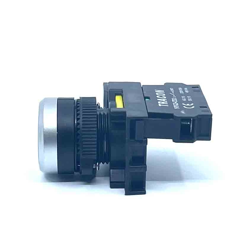 Klasszikus rezgésálló zöld nyomógomb 1xNO (kapcsoló) érintkezőkkel, 230V névleges feszültséggel és 5A névleges árammal.