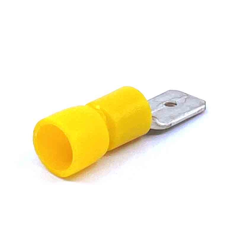 Szigetelt rátolható csatlakozó csap, sárgaréz, sárga 6mm²
