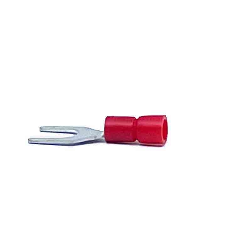 Szigetelt villás saru, ónozott elektrolitréz, piros 1,5mm²