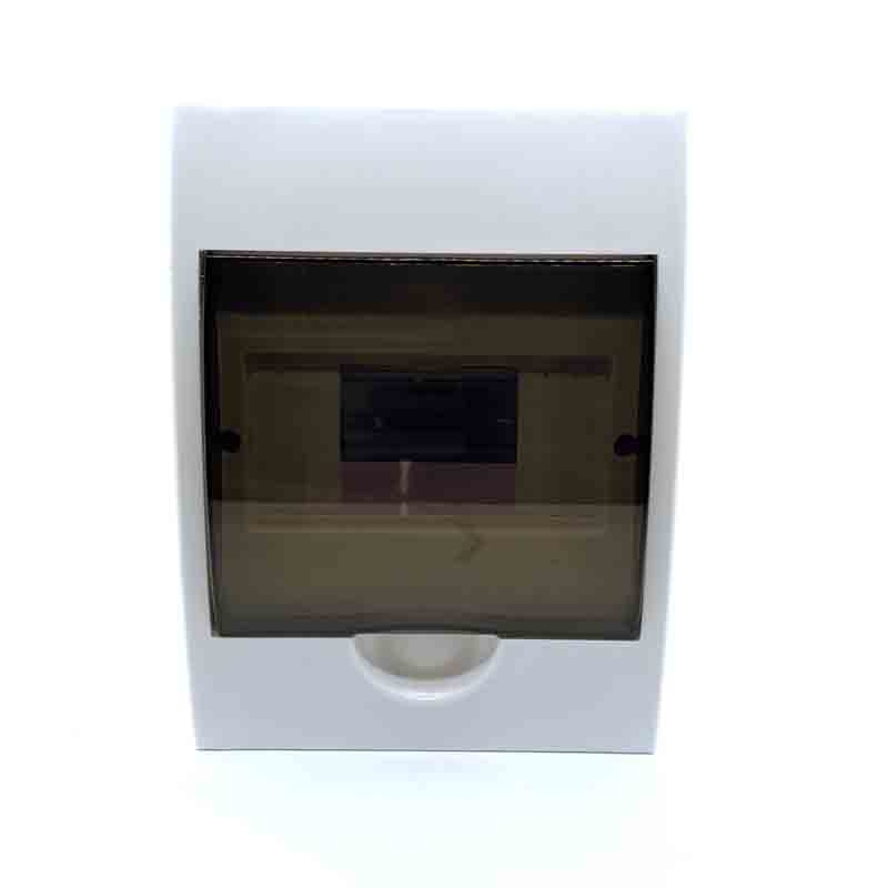 Felületre szerelt 1 × 6-os elosztódoboz átlátszó ajtóval.